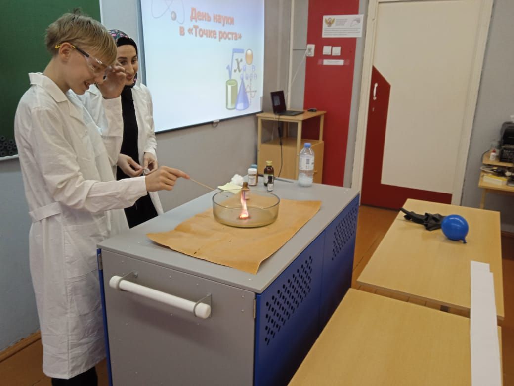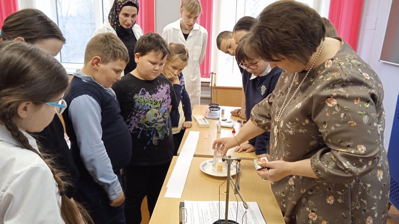 Школьный центр "Точка роста" пригласил учеников 1 - 5 классов на мероприятие "На перекрёстке трёх наук". Учителям помогали учащиеся 7 и 9 классов. Они показали занятные эксперименты и опыты по математике, физике и химии.